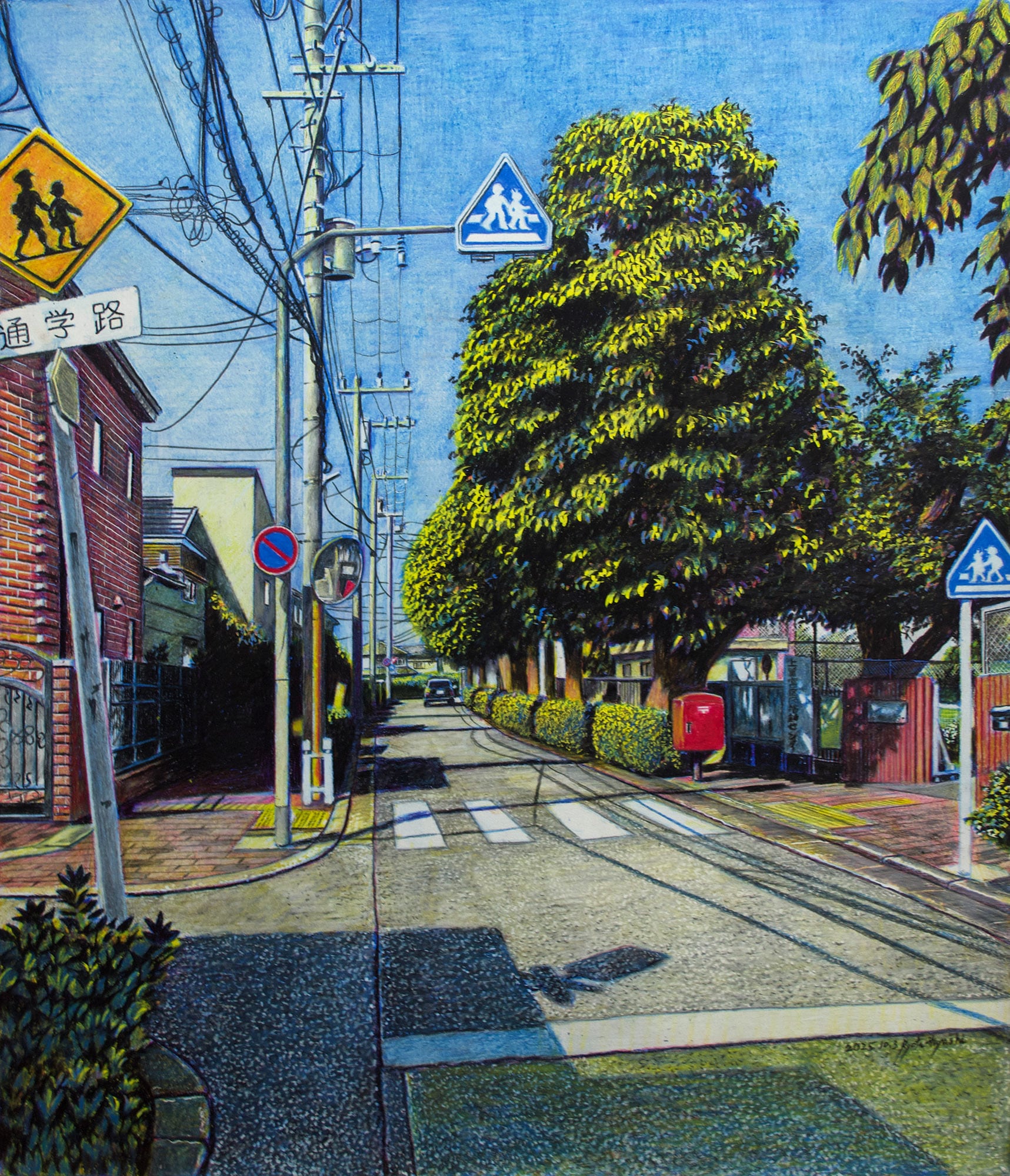 【原画】F10号(530×455mm)/色鉛筆/2025年10月制作 厳しい夏が過ぎて。ひと息つける兆しの午前。 ご注文いただいてから額装いたします。額装に多少お時間をいただきます。表示価格は額装込みのお値段です。 https://ryota-hayashi.com/gallery/landscape/