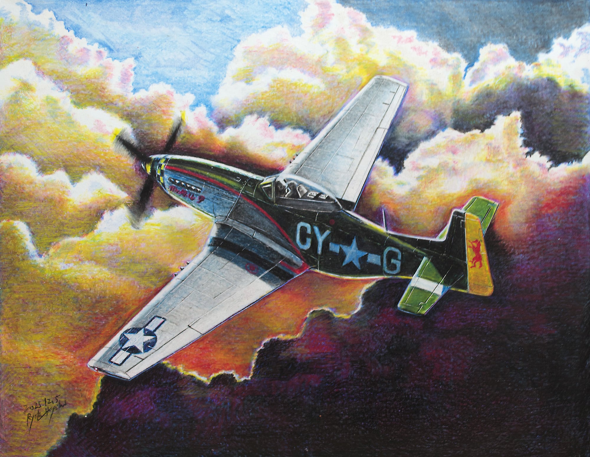 【原画】色鉛筆画/F6号(410×318mm)/2025年12月製作 2026年は午年ですので久々に大戦機を。 価格は額装込みです。御入金確認後に額装いたします。ご注文後1週間〜10日後に発送となります。 https://ryota-hayashi.com/gallery/aviation/