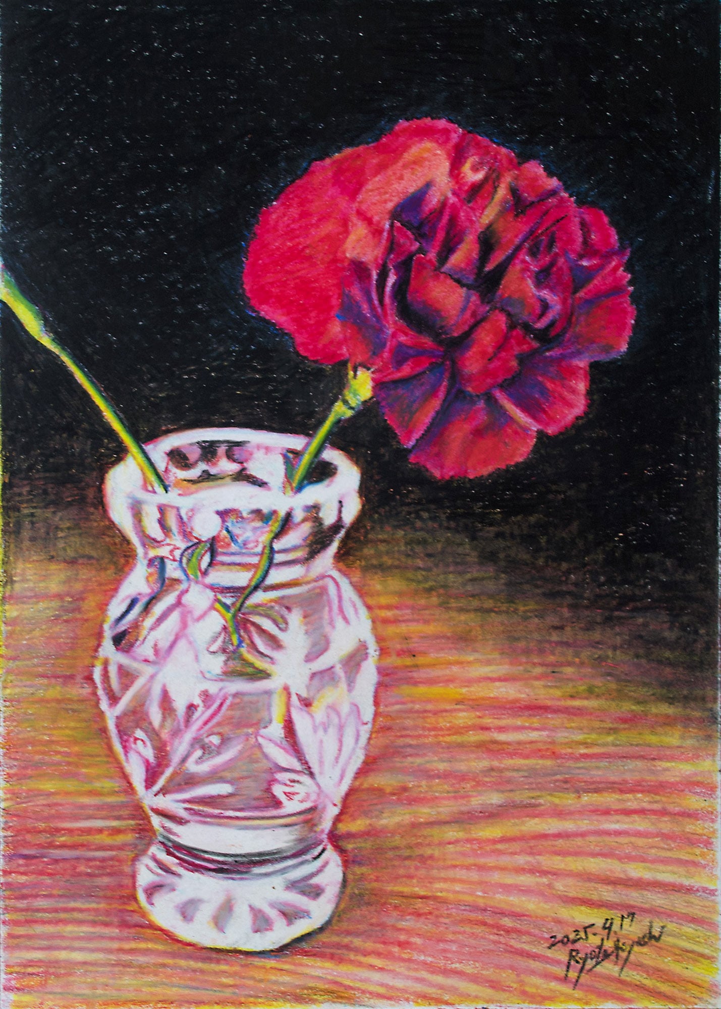 【原画】色鉛筆画/210×148.5mm/2025年4月製作 2025年5月課題。花の質感とガラスの透明感を表現してみよう! 価格は額装込みです。御入金確認後に額装いたします。ご注文後1週間〜10日後に発送となります。https://ryota-hayashi.com/gallery/subjects/